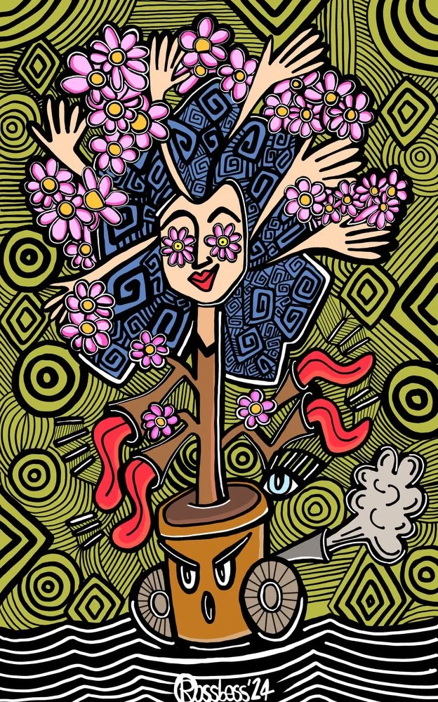 Nel digitale, Rossella ha trovato un mezzo libero, spontaneo, accessibile. I suoi tratti sono netti, le forme essenziali, i colori accesi. Ogni opera è un piccolo viaggio che parte da dentro: un pensiero, un ricordo, un nodo che si scioglie attraverso il disegno. Non cerca la perfezione tecnica, ma l’autenticità del segno.